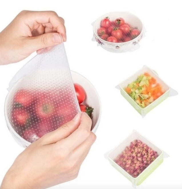 Багаторазове використання легко миється під проточною водою. Допомагають уникнути запахів у холодильнику, продовжують термін зберігання в холодильнику. Стануть справжніми помічниками на будь-якій кухні. Силіконові плівки-кришки просто тягнуться, оскільки зроблені зі спеціального харчового платинового силікону. Він не рветься й готовий слугувати вам дуже довго.